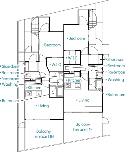 各戸へのエントランスも、落ち着いた上質感を志向し、1Fは焦茶のスチール壁と玉龍の緑で誘い込むデザイン、2Fは白の鉄格子の創り出す光と陰影の連続性に導かれるデザインです。各戸の門扉の外側には美しくデザインされた館銘板・部屋番号表示・外部インターフォン・カメラがある他、各戸玄関ドア脇には各戸専用の監視カメラがつき来訪者と入居者の接触の瞬間を24時間監視。通常の共同マンションより一段階高いセキュリテイーを確保しています。又、東棟西棟の各出入口脇に設置された宅配ボックス・郵便受けも焦茶のスチール壁と統一された美しいデザイン性を確保しています。夜のアプローチ、館銘板、宅配ボックス・郵便受けも間接照明に照らされて上質な邸宅感が滲み出るデザインになっています。