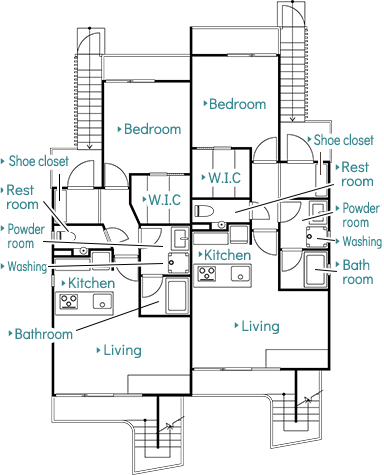 W.I.Cの引戸を開けると、幅約75cm奥行き約150cmの通路の両側に収納棚が、正面に姿見鏡が用意されています。床上210cm以上の部分にも天井収納棚があります。収納棚の詳細は、下記の平面図と立面図をご覧になった上で、ビデオを見ていただけると理解がすすみます。